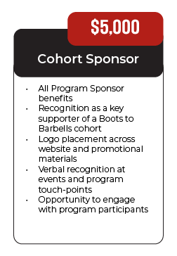 To learn more or become a sponsor, please contact: info@bootstobarbells.com